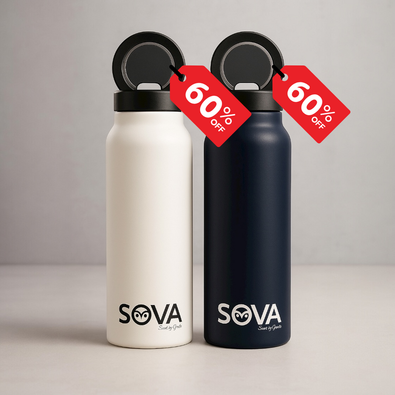 SOVA SUNT HYDROHOLD™ kombinerer tidløst design, slitesterke BPA-frie materialer og en integrert magnetisk mobilholder – perfekt til trening, kontor, kjøkken eller reise.