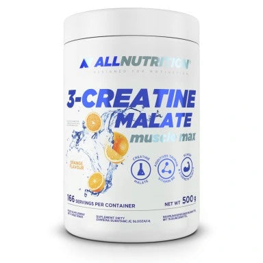 ALLNUTRITION 3-CREATINE MALATE MUSCLE MAX er kreatinmalat av høy kvalitet i pulverform, beriket med vitamin B6, som blandes i drikke. Det er en forbedret form av kreatin, kjent for sin gode oppløselighet.