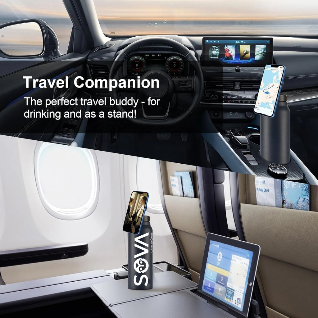 Sova Sunt Hydrohold™ kombinerer førsteklasses design, slitesterke BPA-frie materialer og en integrert magnetisk mobilholder – perfekt for trening, kontor, kjøkken eller reise.